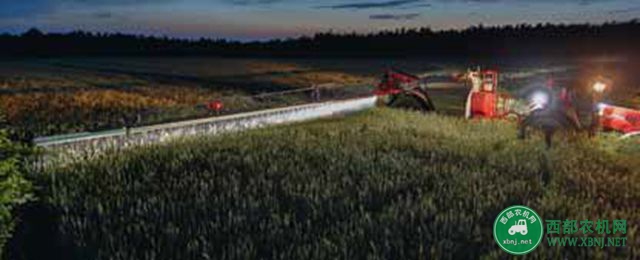 夜間燈光,保證夜里作業時,完美的進行噴藥機監控-高強度燈光 可以穿透噴藥錐 | 光滑的掠過底盤(包裹的液壓 支腳) |