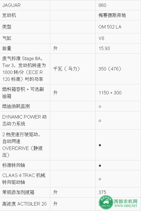 CLAAS(科樂收)JAGUAR860自走式青貯飼料收獲機主要技術參數