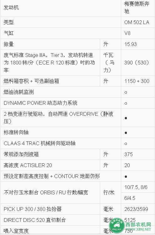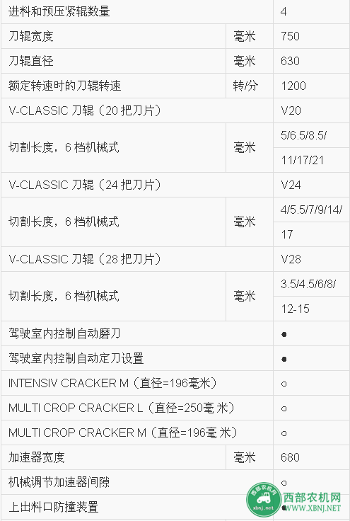 科樂收J(rèn)AGUAR 870自走式青貯飼料收獲機(jī)技術(shù)參數(shù)