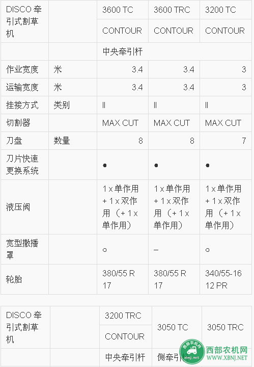 CLAAS(科樂收)DISCO 系列牽引式割草機 技術參數