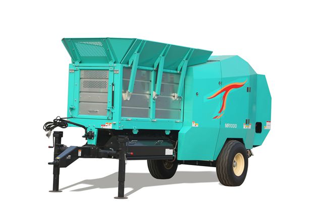 料倉底部的傳送帶可以將作物順利的送入成型室。料倉容量為2.5m(3 大約可容納2 個圓捆),幫助裝載機提高投料作業的效率。