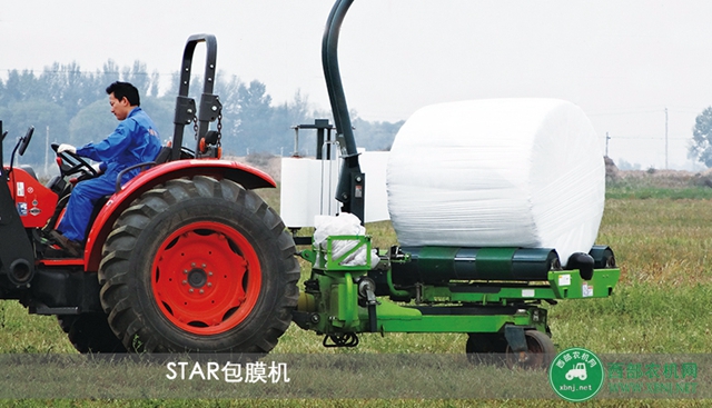 STAR包膜機可對捆網包裹好的青貯草捆包進行預定層數的包膜作業,方便進行貯存、發酵。