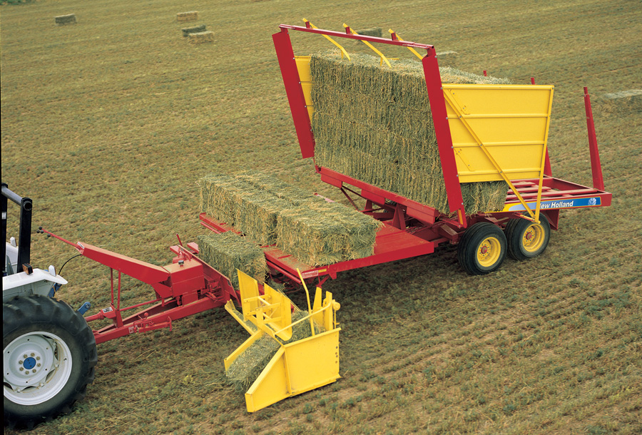 1037 牽引式草捆撿拾車能快速完成撿拾、裝載和碼堆等全部工序,坐在拖拉機駕駛座椅上即可輕松完成所有工作。 它擁有三捆寬的裝載量,可以處理 14x18 或 16x18 的草捆,每批裝載量約四噸。 機械控制的層疊成形可確保每次都能完美堆疊。